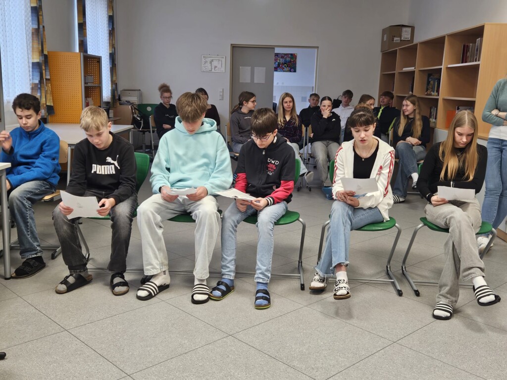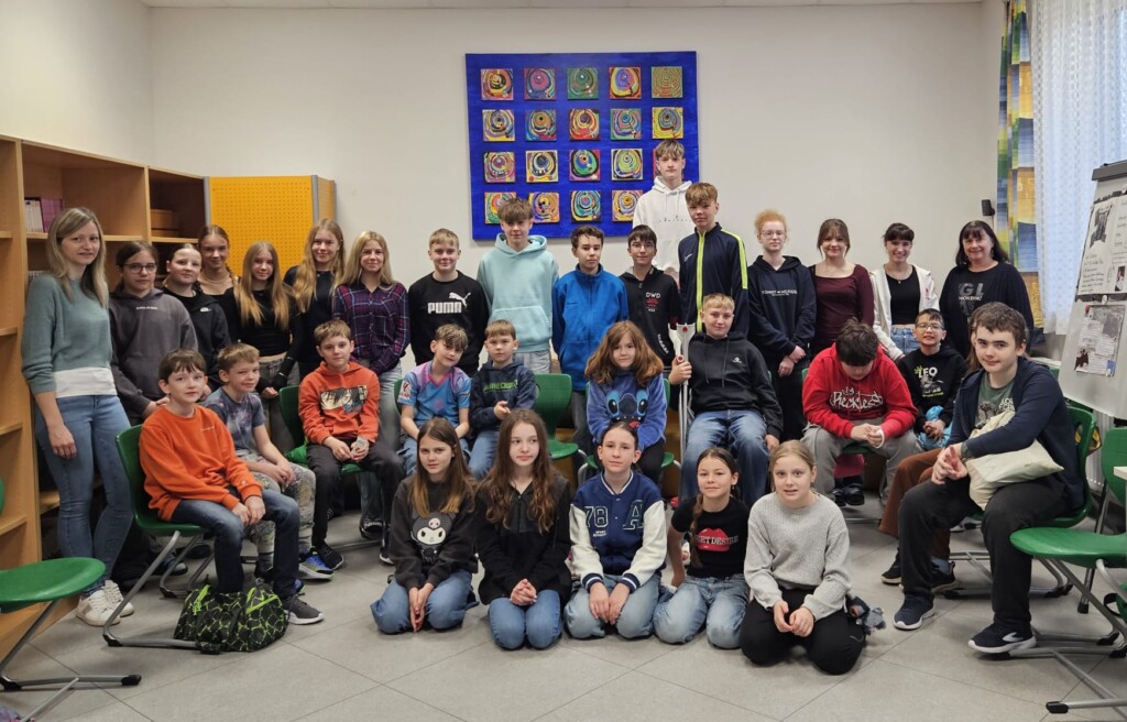 Anlässlich des Österreichischen Vorlesetages am 26. März besuchten die Schülerinnen und Schüler der 4. Klasse Volksschule Neusiedl an der Zaya die Mittelschule. Hier lasen Schülerinnen und Schüler der 4. Klasse Mittelschule den Kleineren die Sage „Der Basilisk“ in Form eines Lesetheaters vor. Vorher erklärten die Großen den Kleinen einzelne Sagenfiguren. Zum Schluss gab es noch ein kurzes Quiz.