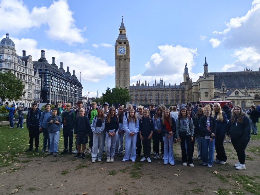 Nach der Landung in England ging es direkt nach London, wo ein spannendes Programm auf die Gruppe wartete. Bei einer Walking-Tour bestaunten die Schüler:innen weltberühmte Sehenswürdigkeiten wie den Big Ben, Houses of Parliament, Trafalgar Square und das London Eye