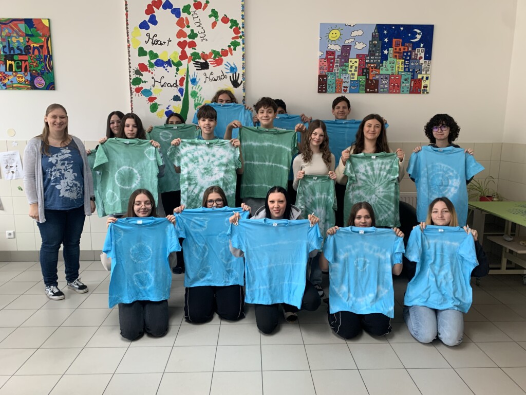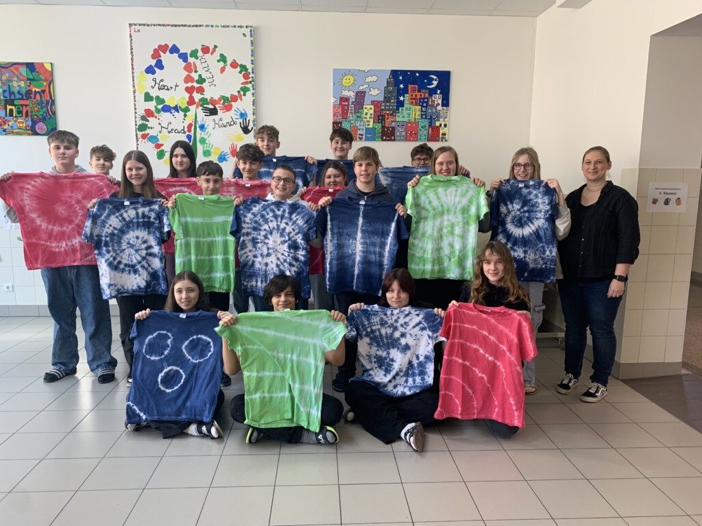 Die Kinder der 4a und 4b haben mit Hilfe von Frau Fachlehrerin Kraft gebatikte T-Shirts gestaltet.