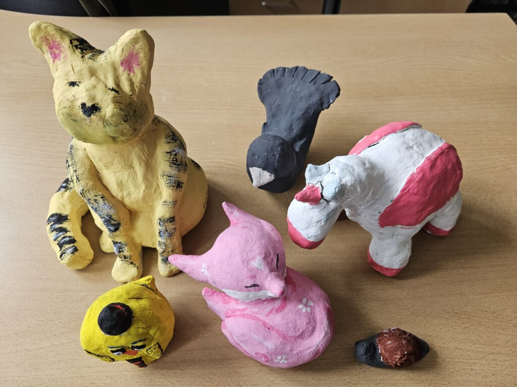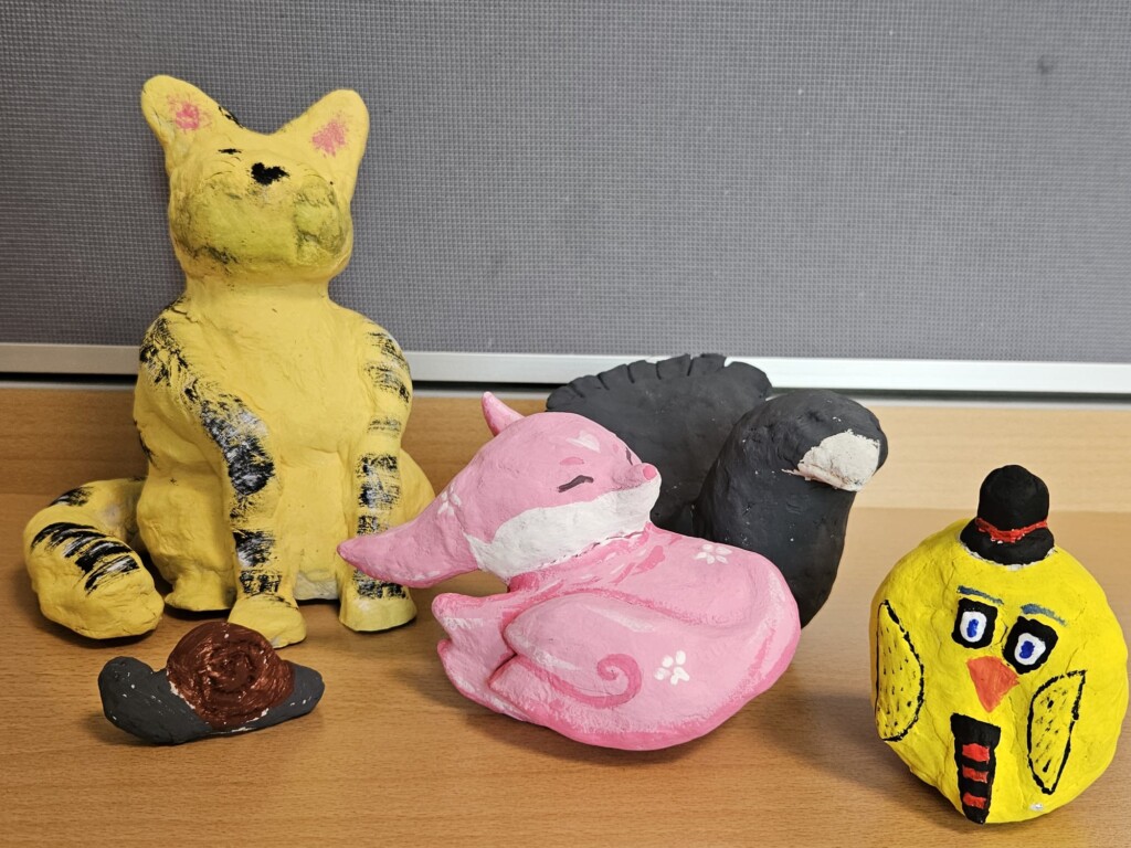 Die Schülerinnen und Schüler der 3. Klassen haben im Wahlpflichtfach “Kreativ” Figuren aus Pappmaché geformt.